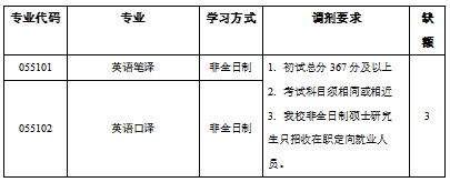 我院英语笔译(非全日制)、英语口译(非全日制)2个专业仍接收调剂考生,现将调剂工作有关事项通知如下: