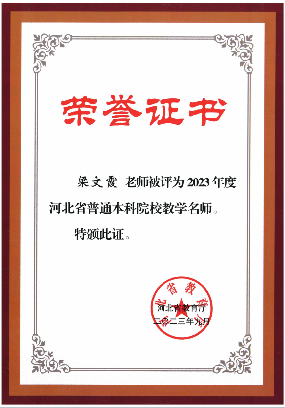 2023年省级教学名师证书—梁文霞