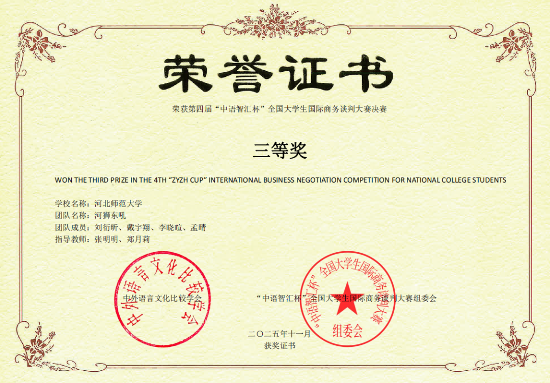 近日,我院教师张明明老师、张莉老师、段文静老师、郑月莉老师带队,分别指导2023级英语(非师范)专业多名学子在多场学科竞赛国赛中连获佳绩,捷报频传!