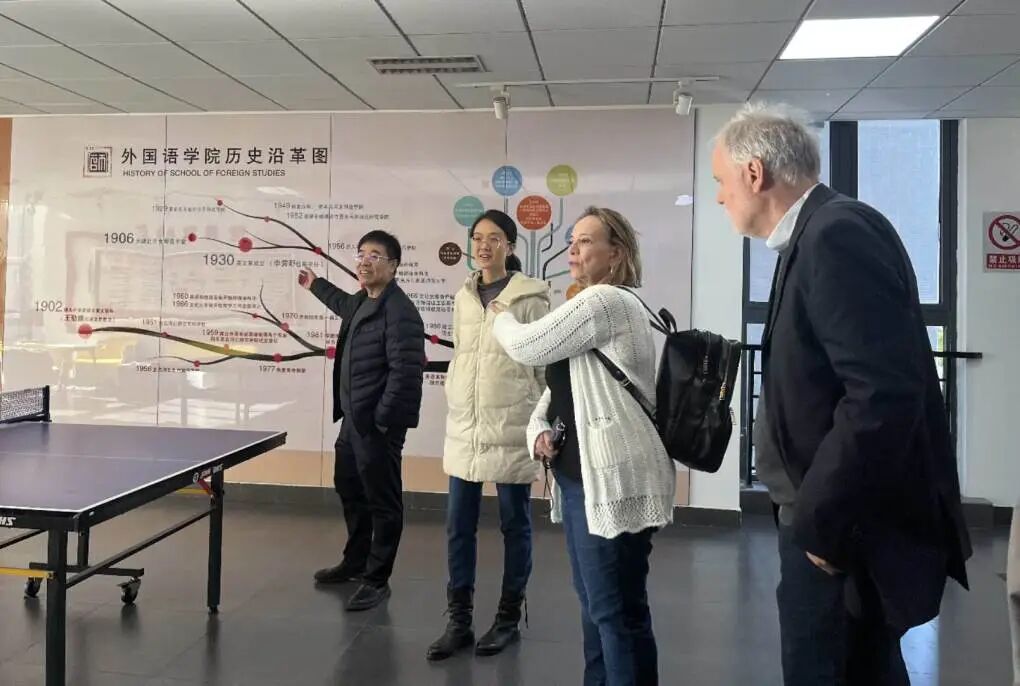 语言实验室实地观摩。期间,我院学生担任导览与翻译,以自信从容的姿态展现师大学子的跨文化交际能力。
